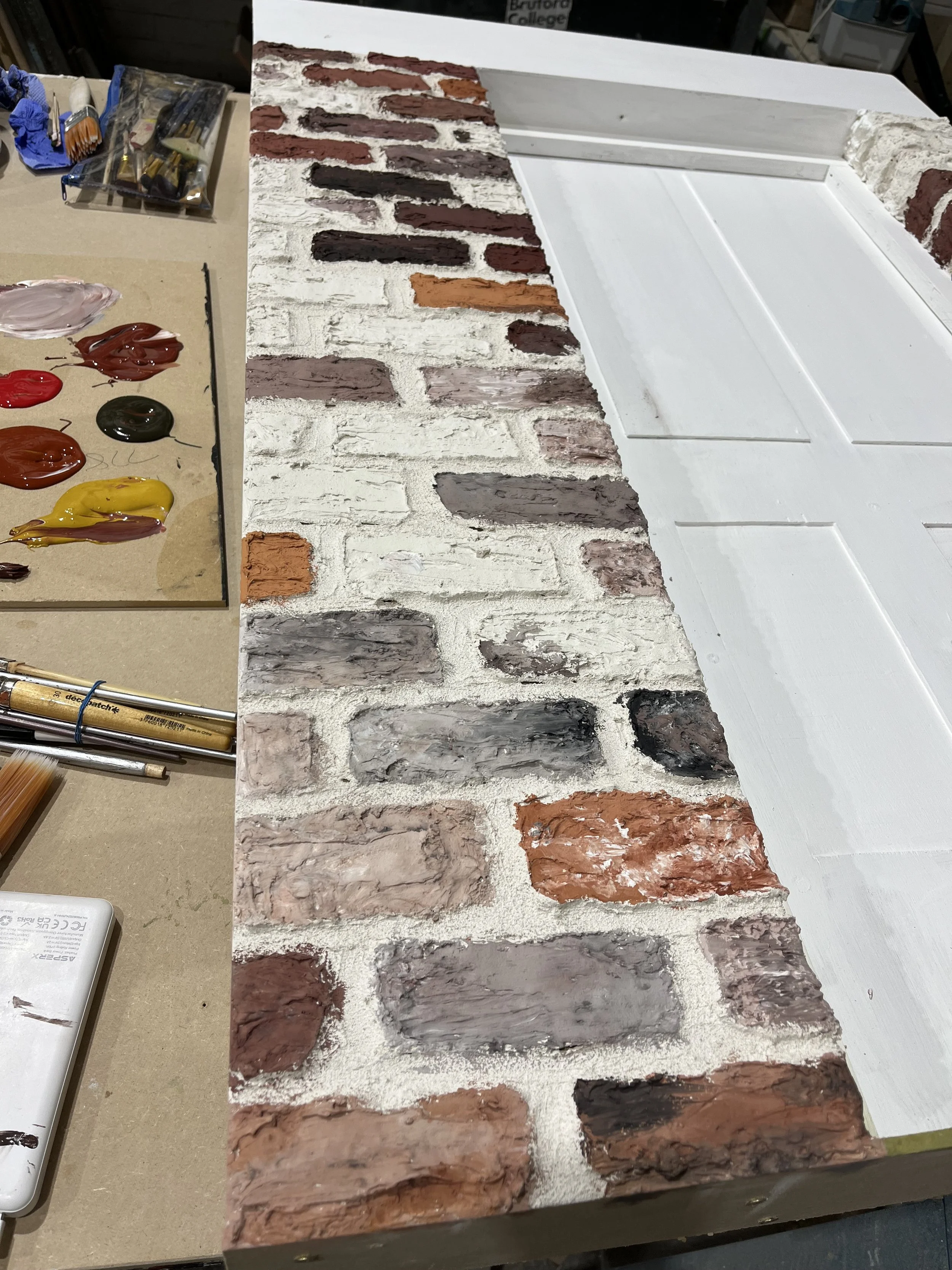 Painting processArtex Brickwork, Scenic Paints and a sponge!